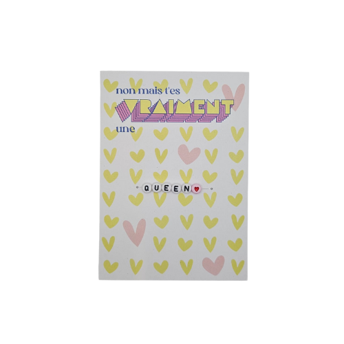 Imaginée par la créatrice lyonnaise Aurélie Kacel, cette carte colorée affiche le message inspirant « Non mais t'es vraiment une queen» et intègre des perles pour se rappeler chaque jour qu’on est fabuleux·se.