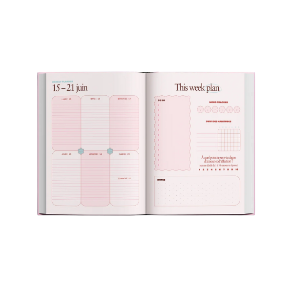 Ce planner t’accompagne jour après jour pour planifier ton quotidien, structurer tes idées, suivre tes habitudes et prendre du temps pour toi grâce à des moments d’introspection mensuels pensés pour rester inspiré·e et motivé·e toute l’année.