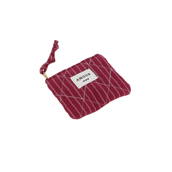 Un petit format plein de charme pour garder précieusement vos pièces, cartes ou petits trésors ! Ce porte-monnaie en coton côtelé séduit par ses jolis motifs graphiques et son inscription brodée "AMOUR" accompagnée de trois cœurs.