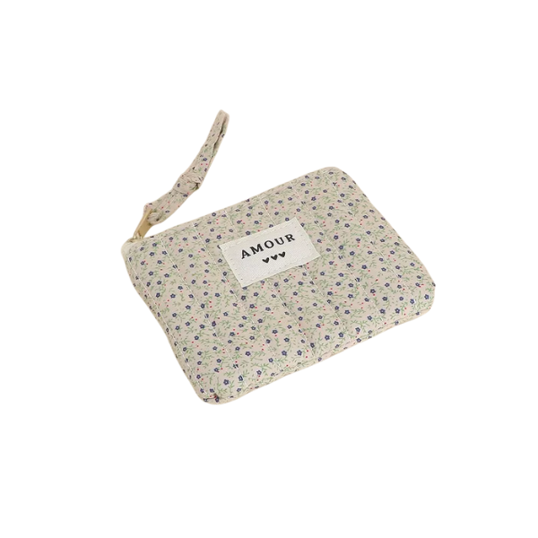 Un petit format plein de charme pour garder précieusement vos pièces, cartes ou petits trésors ! Ce porte-monnaie en coton côtelé séduit par ses jolis motifs graphiques et son inscription brodée "AMOUR" accompagnée de trois cœurs.