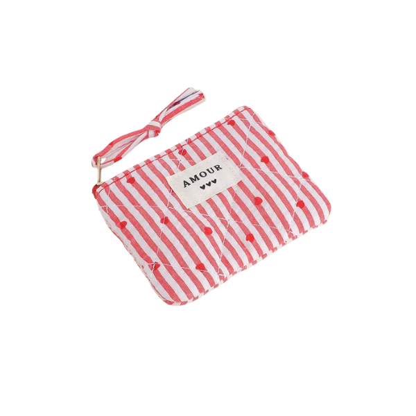 Porte-monnaie - "AMOUR" - rayé cœur rouge