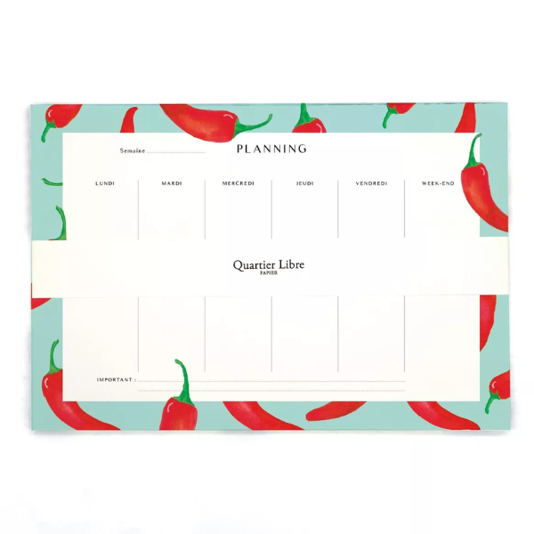 Organisez votre année à votre rythme avec le semainier Quartier Libre, conçu pour être à la fois pratique et esthétique. Dessiné dans notre atelier et fabriqué dans la région toulousaine, ce semainier à 52 pages détachables non datées vous permet de démarrer votre planification quand vous le souhaitez, pour une organisation simple et flexible.